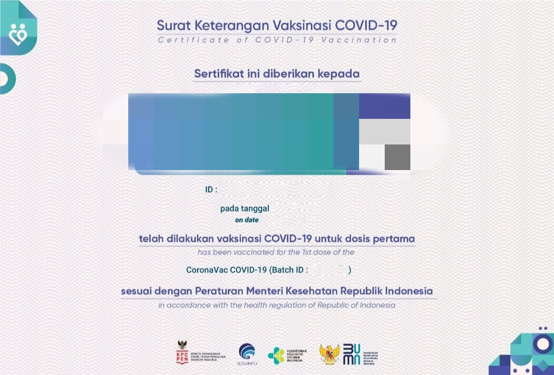 Ilustrasi sertifikat keterangan vaksinasi covid-19