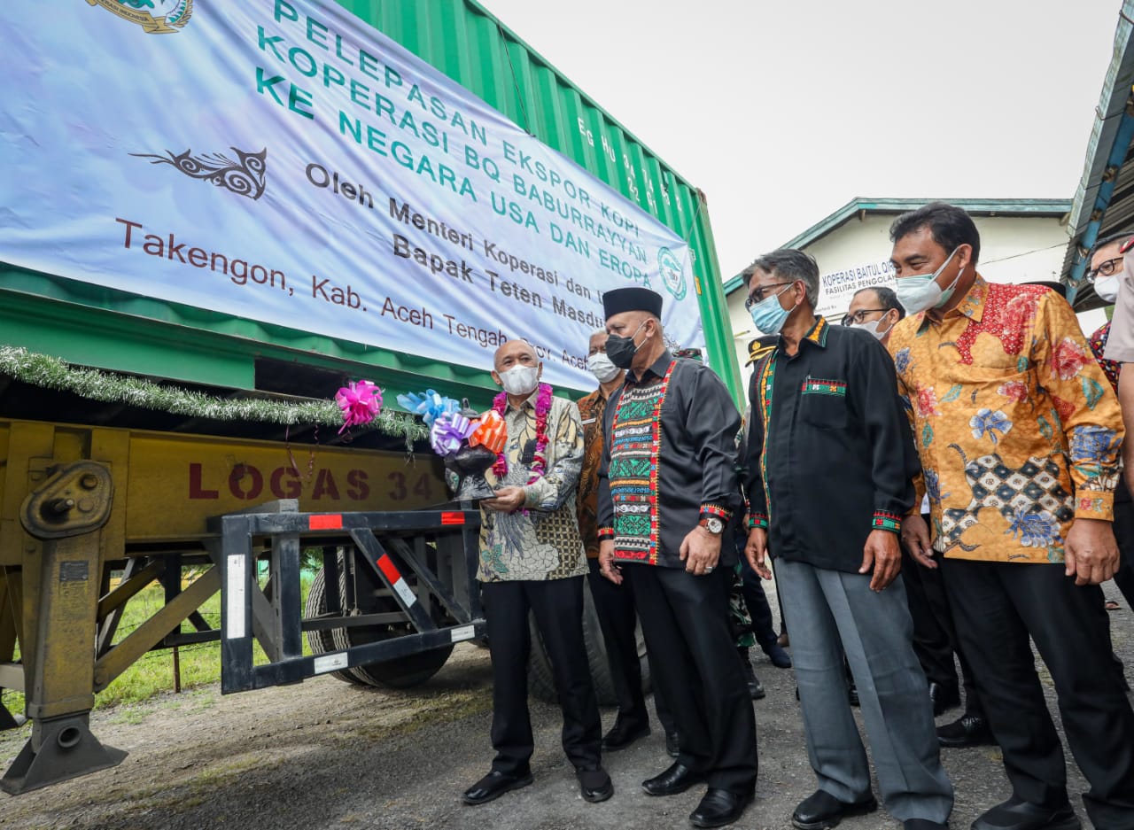 “Saya juga pecinta kopi gayo. Kopi di Aceh Tengah ini sudah menjadi komoditas penting karena sekitar 60 persen warganya hidup dari pertanian kopi,” ujar Teten Masduki dalam sambutan pelepasan 18 kontainer ekspor kopi organik sekaligus kunjungan kerja di Koperasi Baitul Qiradh (BQ) Baburayyan, Takengon, Aceh Tengah, Kamis (17/6/2021).