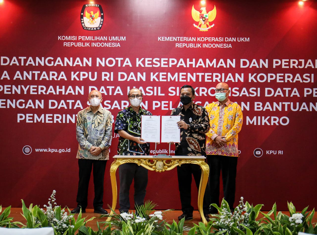 “Kami membutuhkan dukungan data KPU untuk memvalidasi data pelaku usaha mikro calon penerima BPUM, terutama untuk item data NIK, Nama, jenis Gender dan Alamat. Data dari KPU kita perlukan agar penyaluran program BPUM lebih tepat sasaran,” kata Menteri Koperasi dan UKM Teten Masduki, pada acara penandatanganan nota kesepahaman dan perjanjian kerjasama antara Kementerian Koperasi dan UKM dengan KPU, di Jakarta, Kamis (29/4/2021).