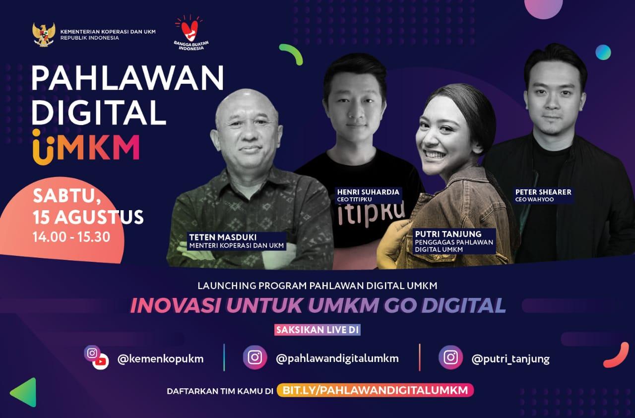 Program ini dimulai 15 Agustus 2020, jam 14.00 WIB. Menteri Koperasi dan UKM bersama penggagas Pahlawan Digital UMKM, Putri Tanjung akan berbincang bersama CEO Titipku Henri Suhardja dan CEO Wahyoo Peter Shearer untuk berbagi inspirasi, terutama kepada anak muda Indonesia.