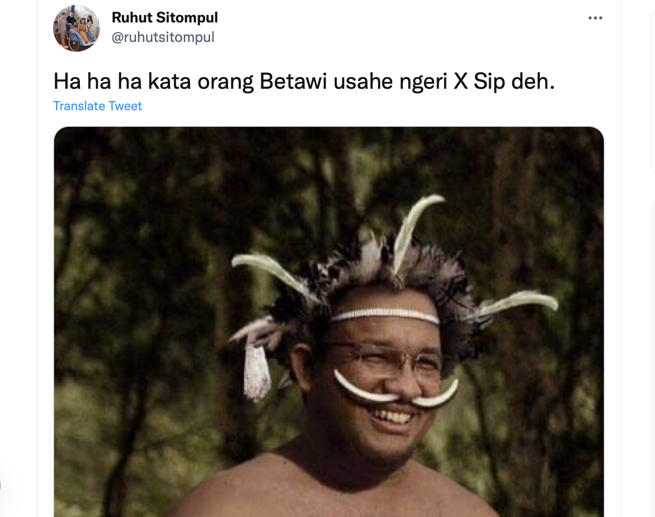 Dalam unggahan Ruhut Sitompul itu juga menulis ejekan yang bernada merendahkan. “Ha ha ha kata orang Betawi usahe ngeri X Sip deh,” tulis Ruhut.